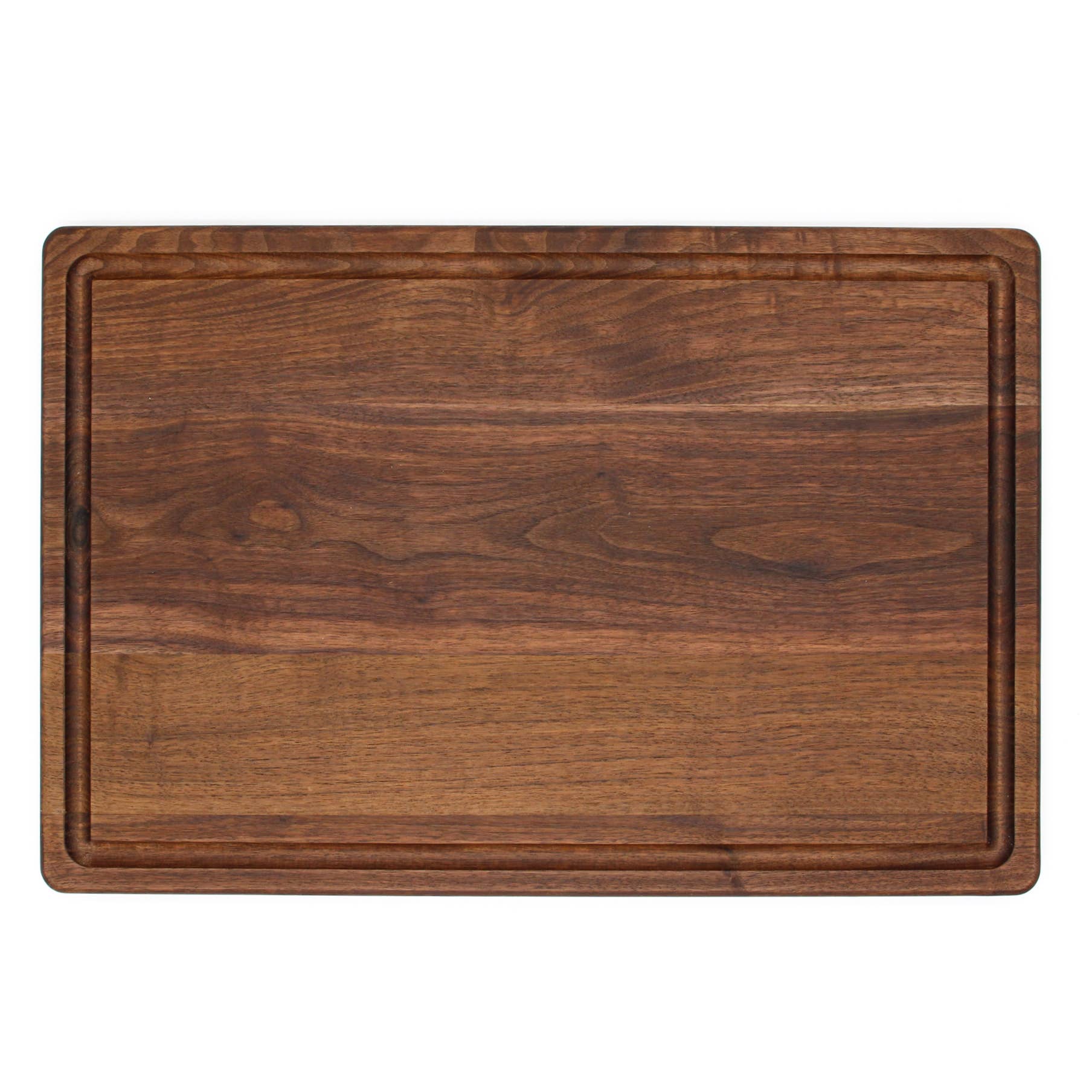 Introducing our premium 18x12x.75" Cutting Board with Juice Groove—a must-have addition to your kitchen. Crafted entirely in the USA, this cutting board is designed for both durability and versatility. The built-in juice groove helps keep your workspace clean by catching excess liquids, making it perfect for carving meats or prepping juicy fruits and vegetables. Its reversible design adds even more functionality—use one side for slicing and the other for serving, ensuring you get maximum use out of this high-quality board. Whether you're a home cook or a professional chef, this cutting board offers the perfect blend of style, craftsmanship, and practicality.