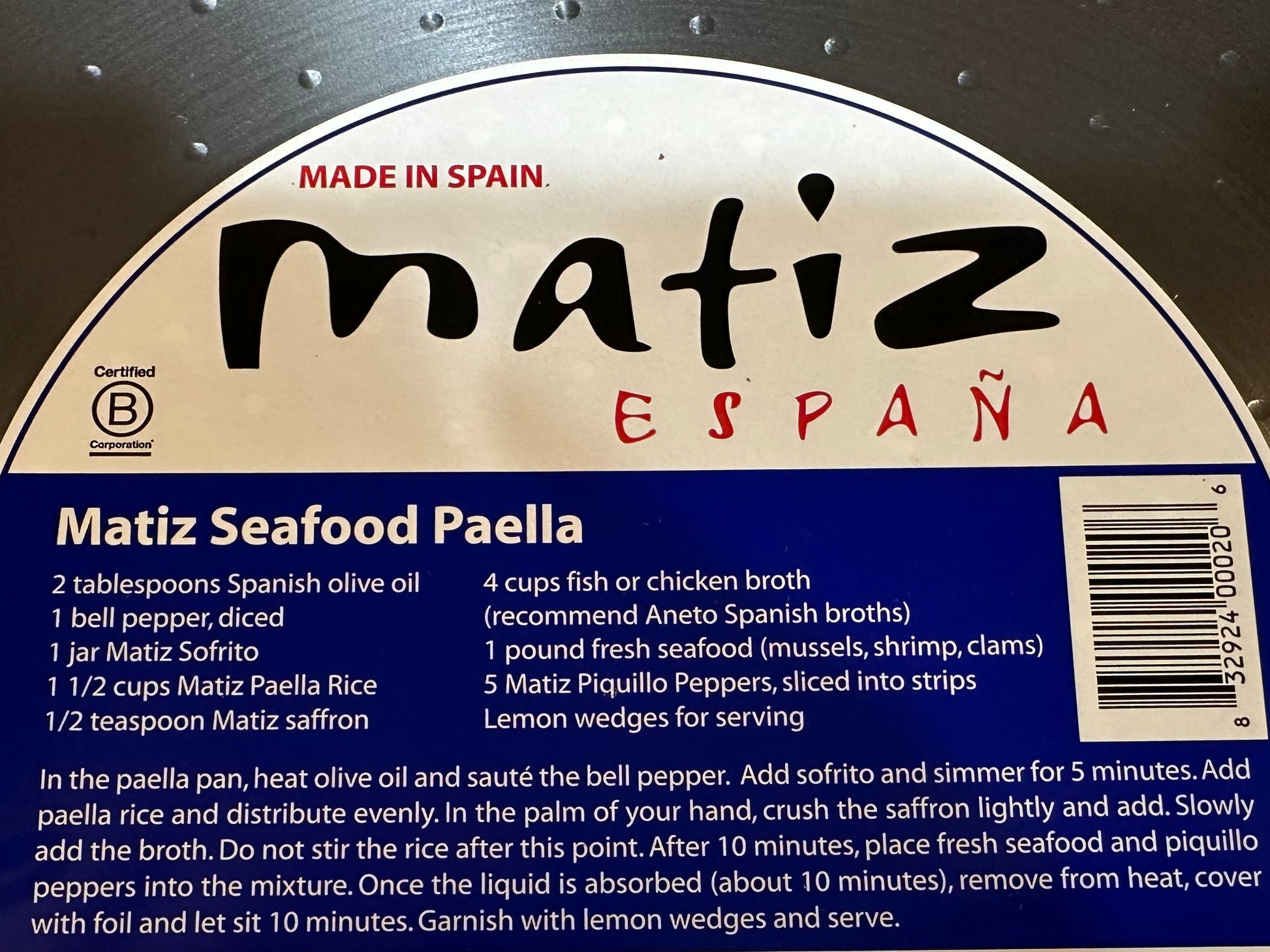 Authentic Spanish paella pan serves 4-6 people, made with polished steel. Made in Spain with high quality, polished carbon steel and rubber coated handles. It’s also the perfect pan for ‘fideau’, a noodle paella from the Valencia region of Spain. Please boil water in pan before first use to remove protective layer that has been added to ensure product quality. After washing, clean and dry pan well and coat in light layer of oil between uses. See label for recipe!