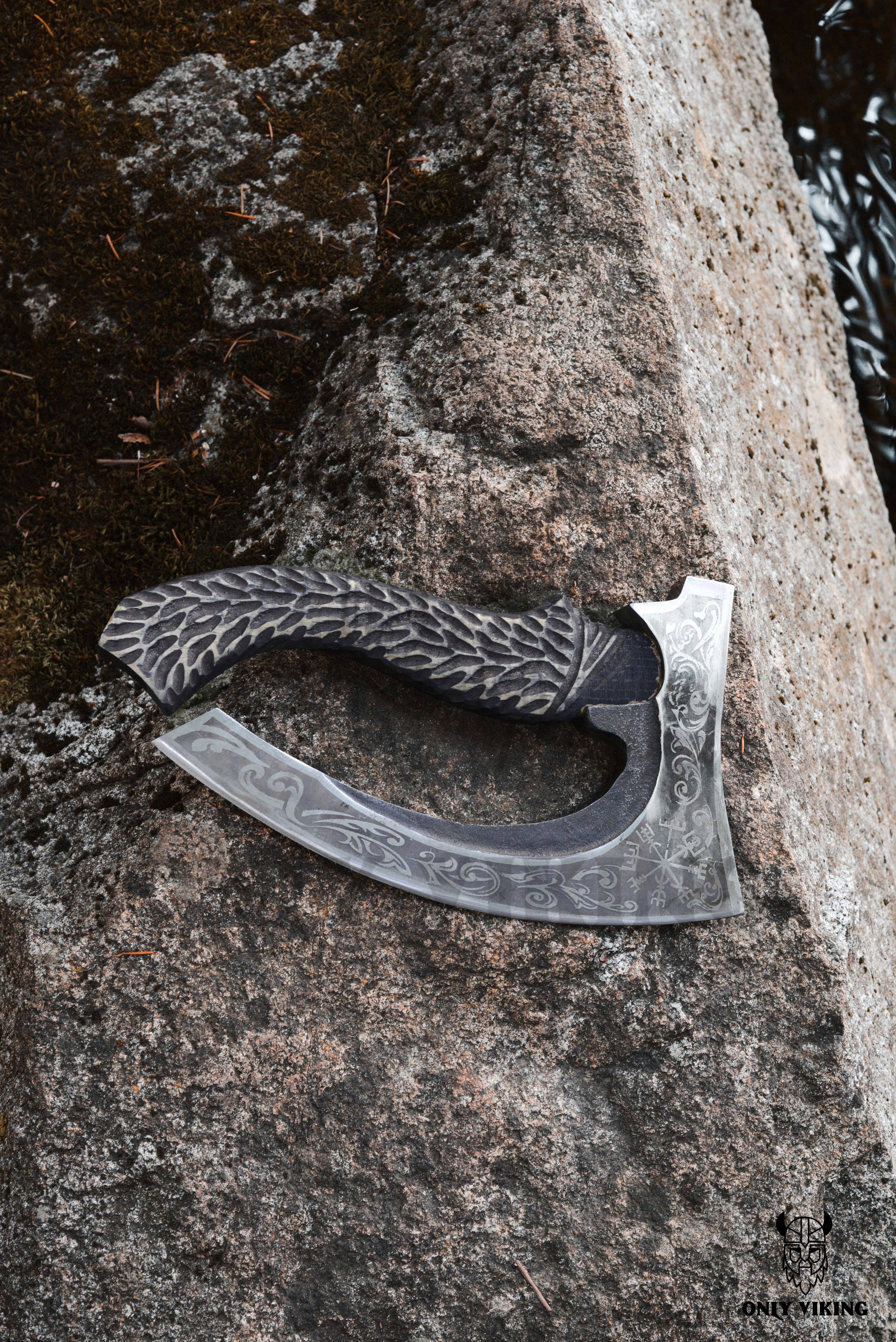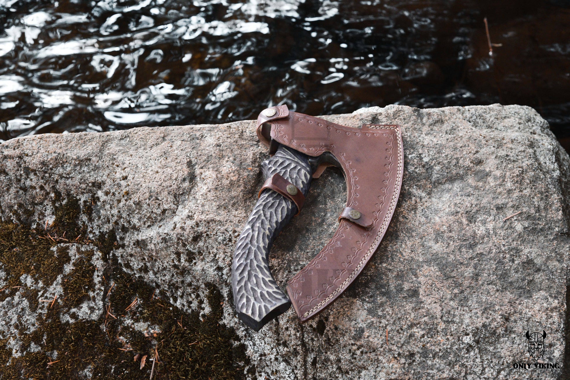 This unique and eye-catching pizza cutter is not your average kitchen tool – it's a slice of history and adventure right in your hands. The Viking Pizza Cutter Axe is designed to resemble a traditional Viking battle axe, complete with intricate engravings and rugged details. Crafted from high-quality stainless steel, the blade of this culinary weapon is sharp and sturdy, ensuring a clean and effortless pizza-cutting experience. The handle is made from durable, hand-finished wood, providing a comfortable grip reminiscent of the Viking era. The combination of stainless steel and wood not only ensures the cutter's longevity but also adds an authentic touch to your kitchen. This version is larger and more intricate than our other cutter. Made in Canada.