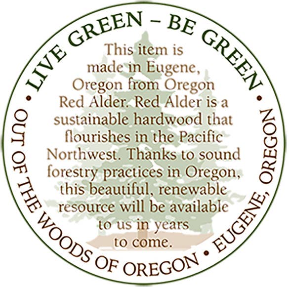 Our Red Alder Butcher Blocks are made from solid Red Alder and they are 1-3/8" thick. Sturdy and beautiful, they are an impressive addition to any table. Made in Oregon from Red Alder a sustainable hardwood that flourishes in the Pacific Northwest. Pure Mineral Oil finish. 12"x12"x1.38".